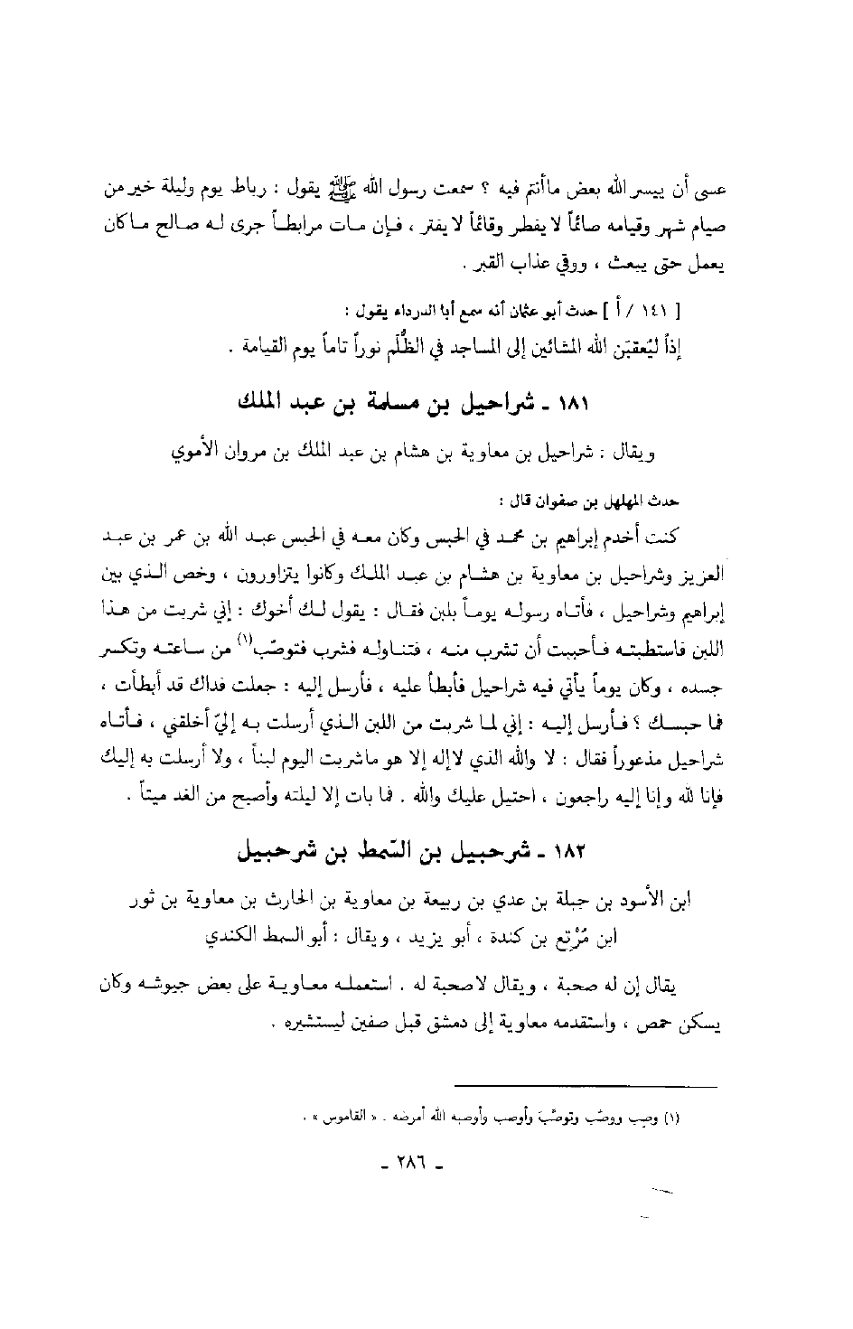 ويقال: شراحيل بن معاوية بن هشام بن عبد الملك بن مروان الأموي حدث المهلهل بن صفوان قال: