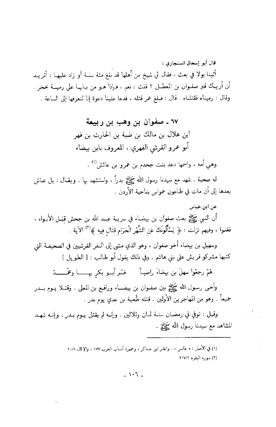 عن ابن عباس أن النبي صَلَّى اللهُ عَلَيْهِ وَسَلَّمَ بعث صفوان بن بيضاء في سرية عبد الله بن جحش قِبَل الأبواء، فغنموا، وفيهم نزلت: " يَسأَلُونَكَ عَنِ الشَّهرِ الحَرَامِ قتال فِيهِ " الآية.