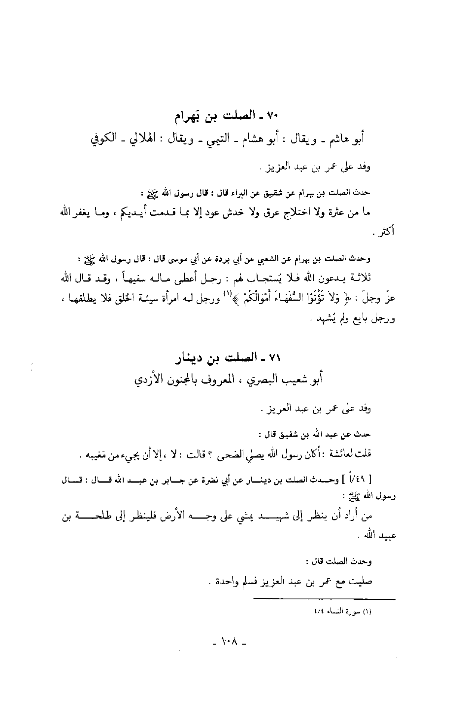 وحدث الصلت قال: صليت مع عمر بن عبد العزيز فلسم واحدة.