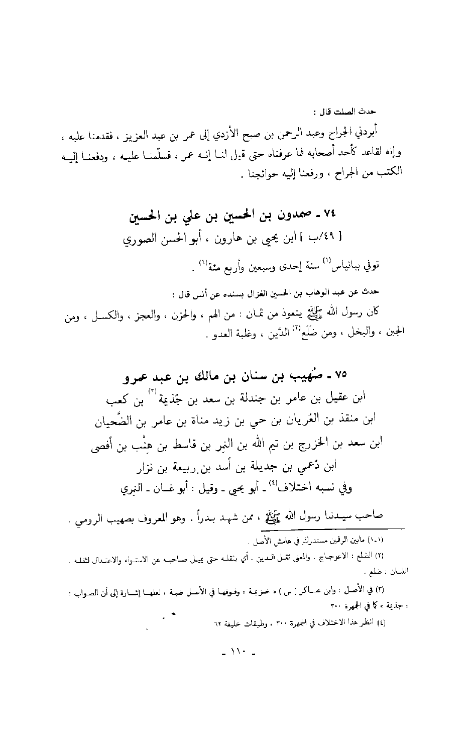 حدث الصلت قال: أبردني الجراح وعبد الرحمن بن صبح الأزي إلى عمر بن عبد العزيز، فقدمنا عليه، وإنه لقاعد كأحد أصحابه فما عرفناه حتى قيل لنا إنه عمر، فسلّمنا عليه، ودفعنا إليه الكتب من الجراح، ورفعنا إليه حوائجنا.