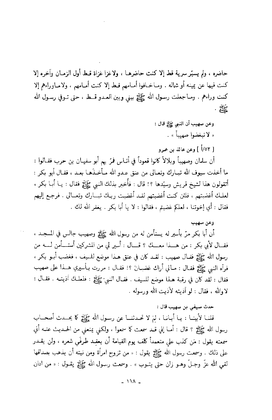 وعن صهيب أن النبي صَلَّى اللهُ عَلَيْهِ وَسَلَّمَ قال: " لا تبغضوا صهيباً ".
