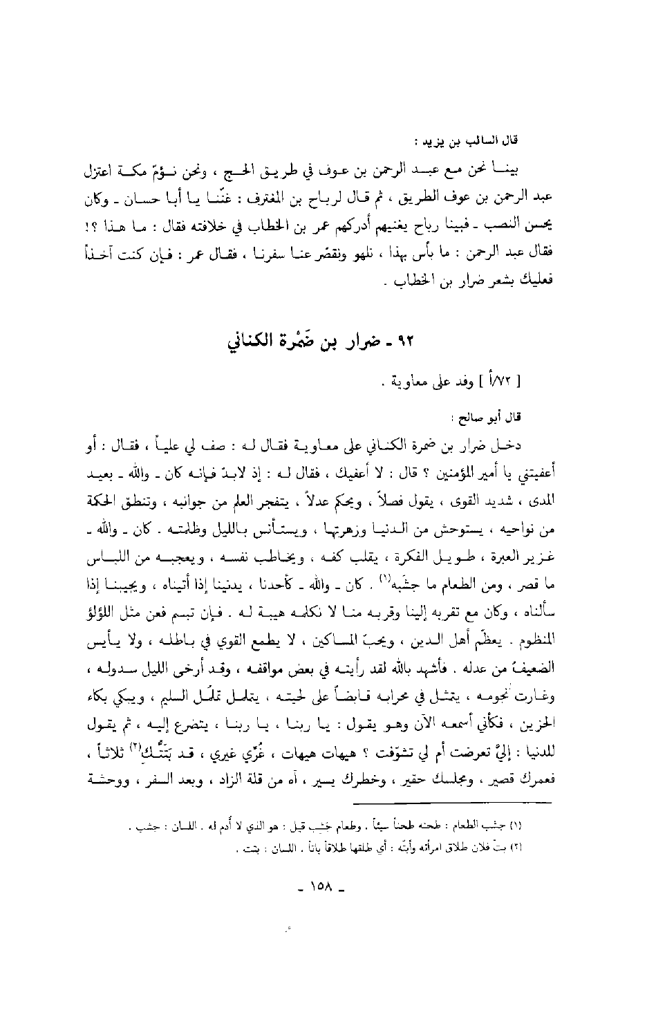 قال السائب بن يزيد: بينا نحن مع عبد الرحمن بن عوف في طريق الحج، ونحن نؤمّ مكة اعتزل عبد الرحمن بن عوف الطريق، ثم قال لرباح بن المغترف: غنّنا يا أبا حسان - وكان يحسن النصب - فبينا رباح يغنيهم أدركهم عمر بن الخطاب في خلاته فقال: ما هذا؟! فقال عبد الرحمن: ما بأس بهذا، نلهو ونقصّر عنا سفرنا، فقال عمر: فإن كنت آخذاً فعليك بشعر ضرار بن الخطاب.