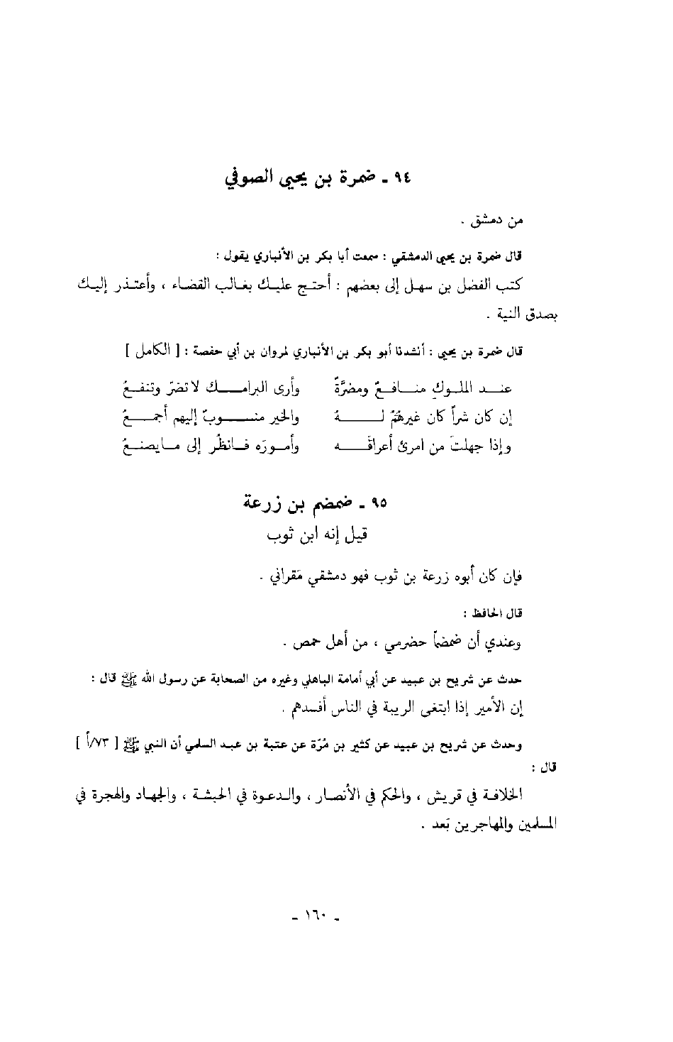 قال ضمرة بن يحيى: أنشدنا أبو بكر بن الأنباري لمروان بن أبي حفصة: " الكامل "