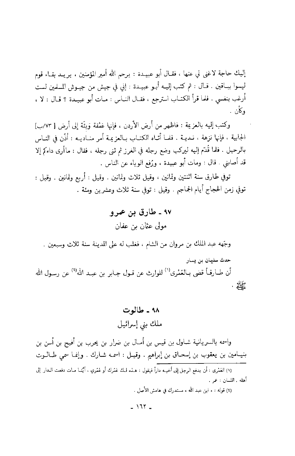 إليك حاجة لا غنى لي عنها، فقال أبو عبيدة: يرحم الله أمير المؤمنين، يريد بقاء قوم ليسوا بباقين. قال: ثم كتب إليه أبو عبيدة: إن في جيش من جيوش المسلمين لست أرغب بنفسي. فلما قرأ الكتاب استرجع، فقال الناس: مات أبوعبيدة؟ قال: لا، وكأن.