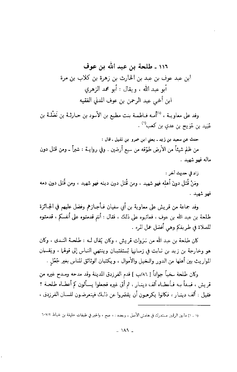 حدث عن سعيد بن زيد يعني ابن عمرو بن نفيل قال: من ظلم شيئاً من الأرض طوّقه من سبع أرضين وفي رواية: شبراً ومن قتل دون ماله فهو شهيد.