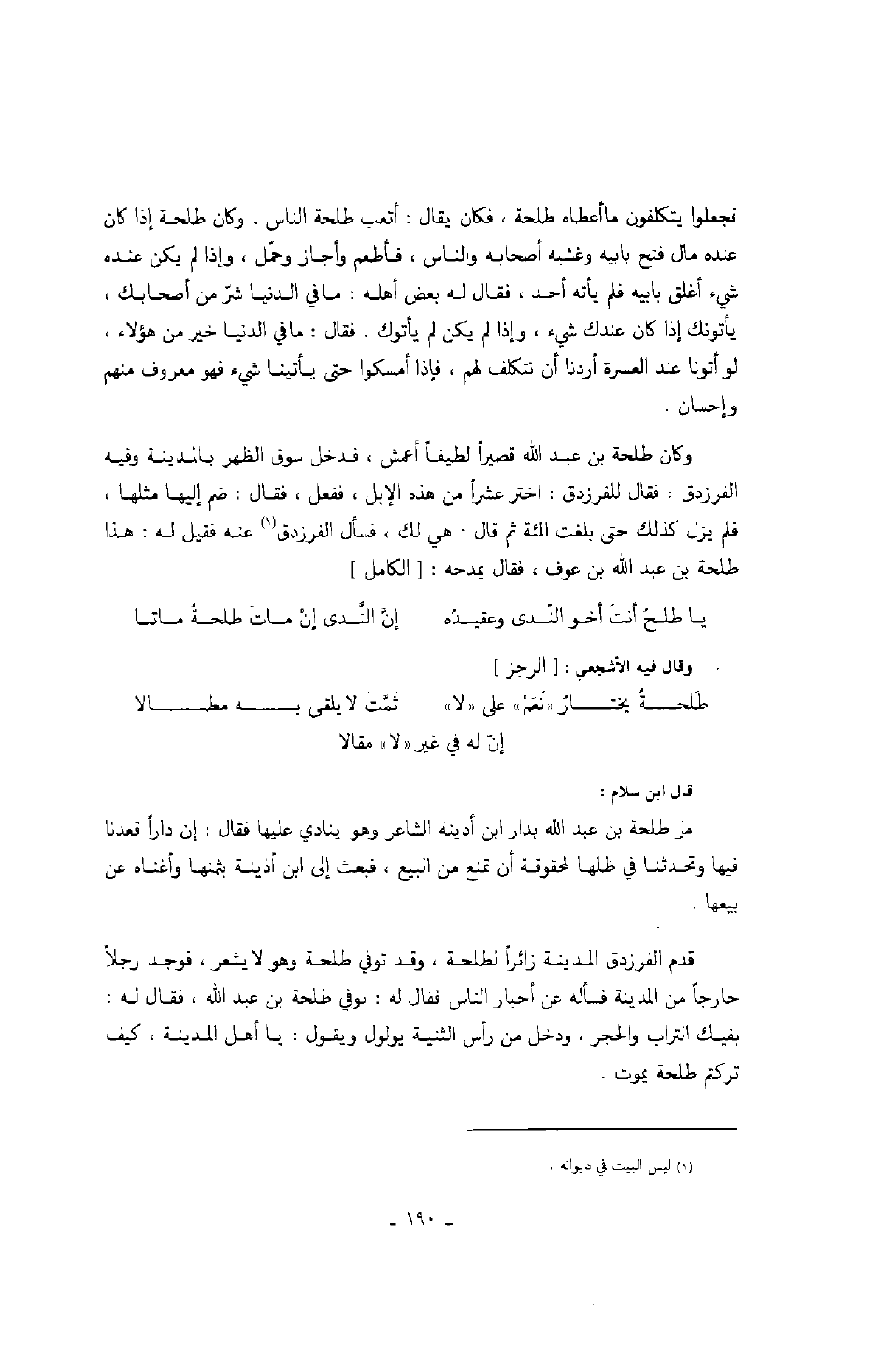 يا طلحُ أنتَ أخو الندى وعقيدُه ... إنَّ النَّدى إن ماتَ طلحةُ ماتا