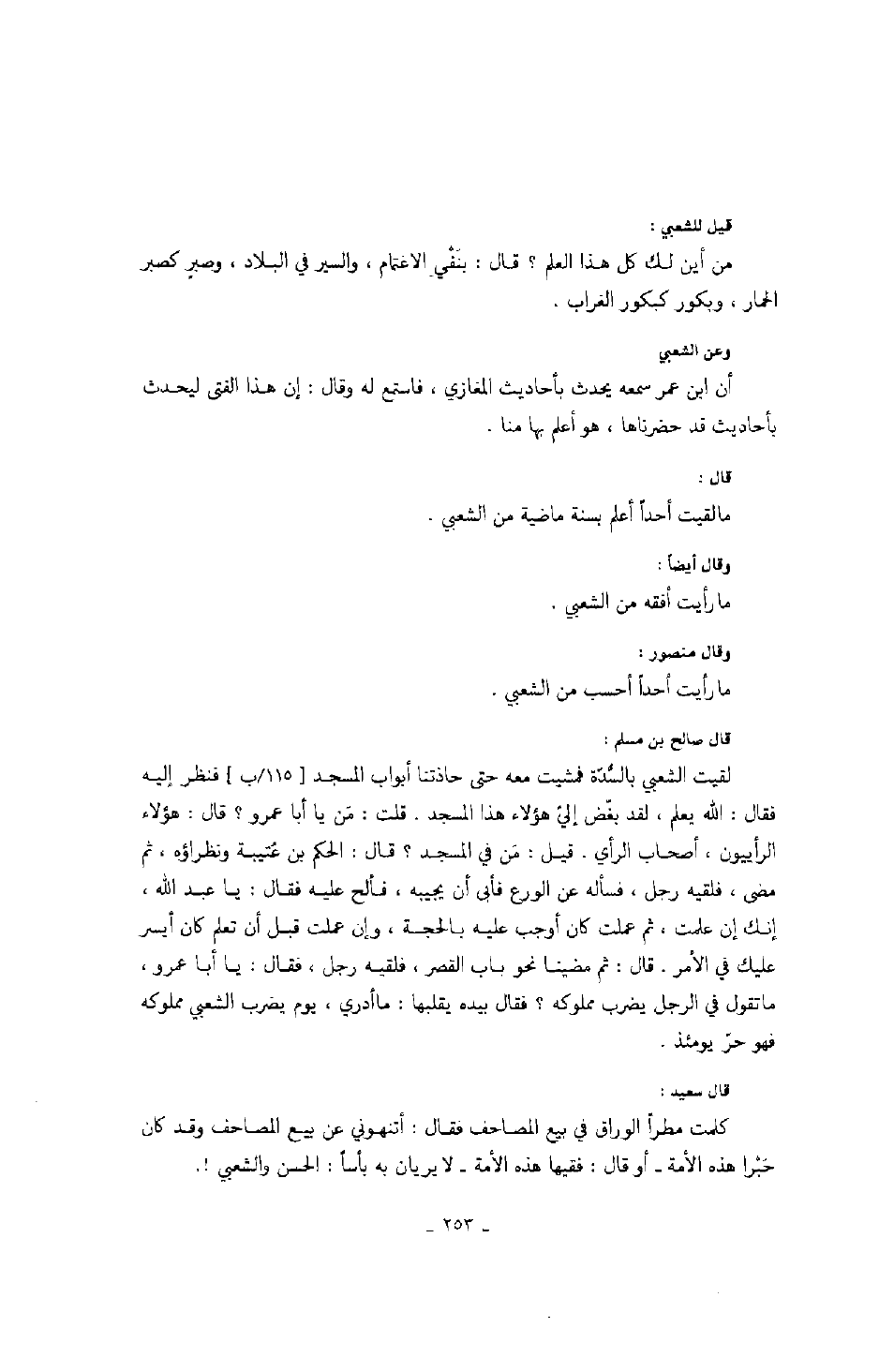 قال: ما لقيت أحداً أعلم بسنة ماضية من الشعبي.