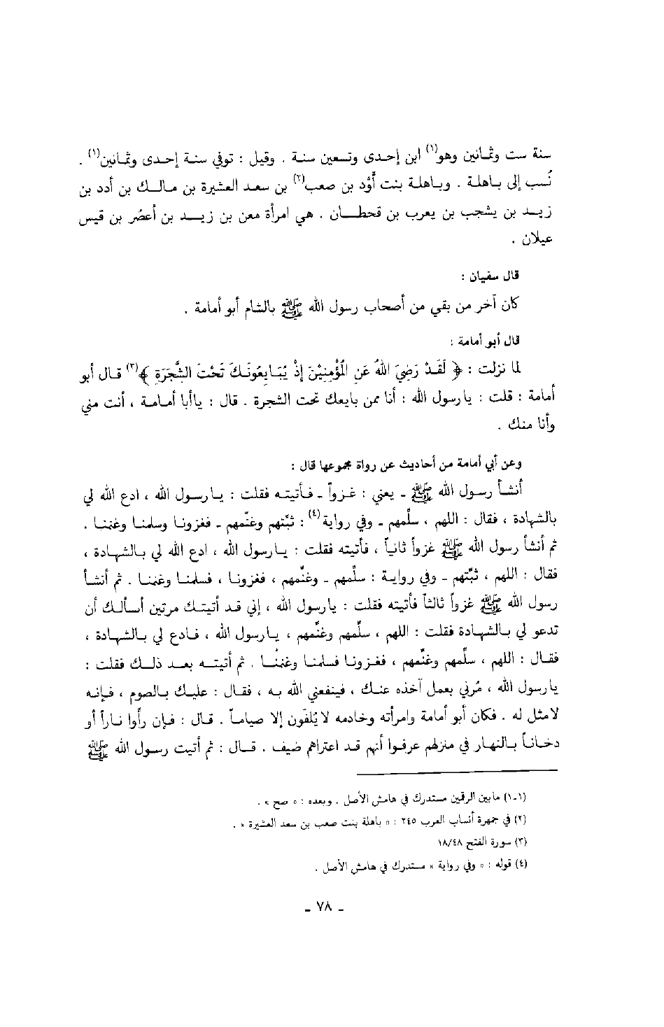 قال سفيان: كان آخر من بقي من أصحاب رسول الله صَلَّى اللهُ عَلَيْهِ وَسَلَّمَ بالشام أبو أمامة.