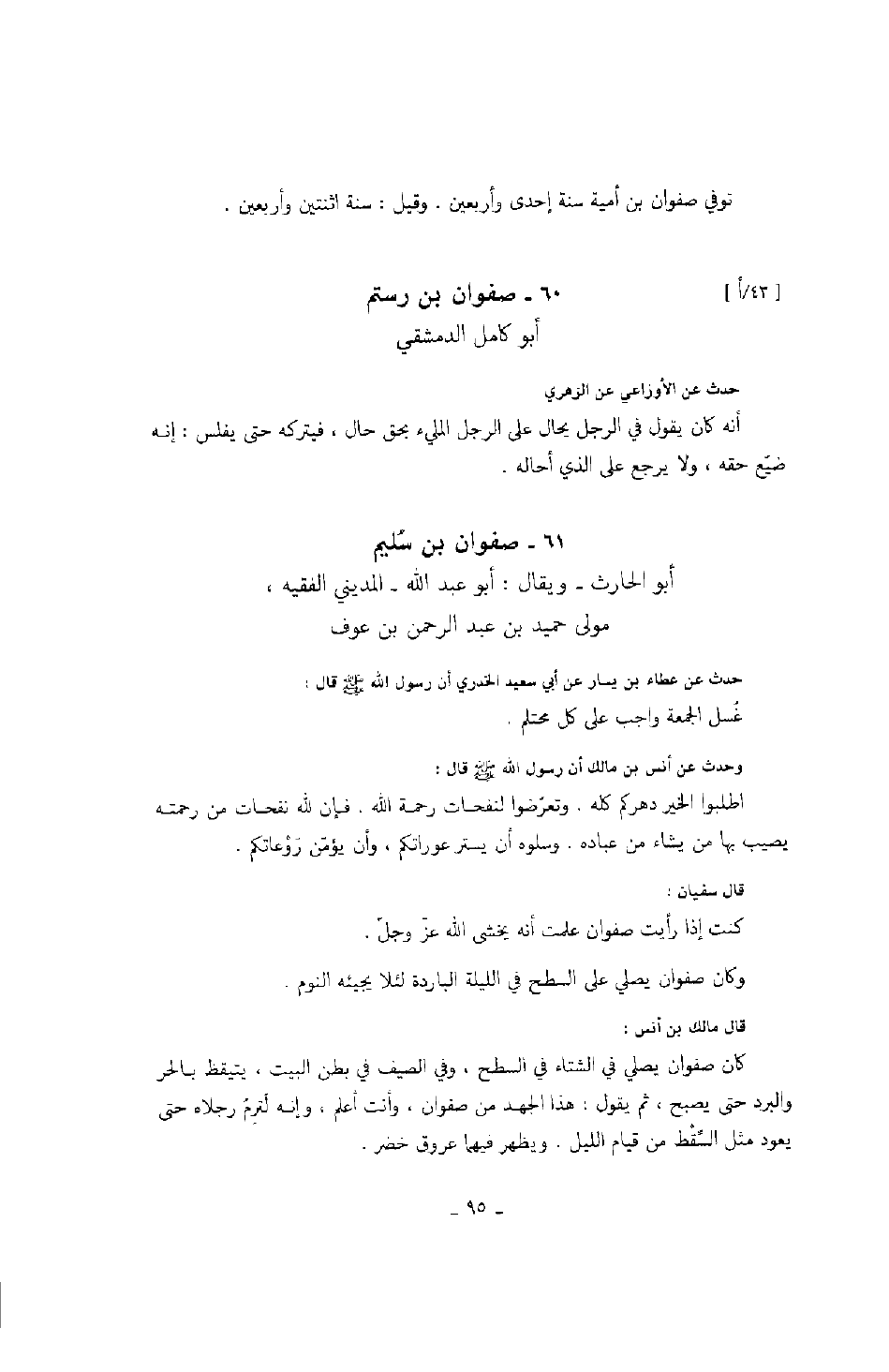 وكان صفوان يصلي على السطح في الليلة الباردة لئلا يجيئه النوم.