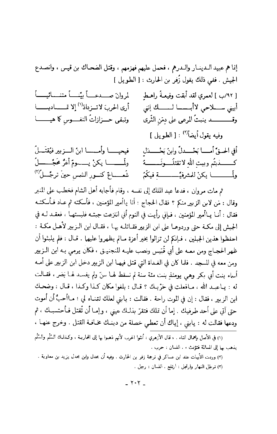 إنما هم عبيد الدينار والدرهم، فحمل عليهم فهزمهم، وقتل الضحاك بن قيس، وانصدع الجيش. ففي ذلك يقول زفر بن الحارث: