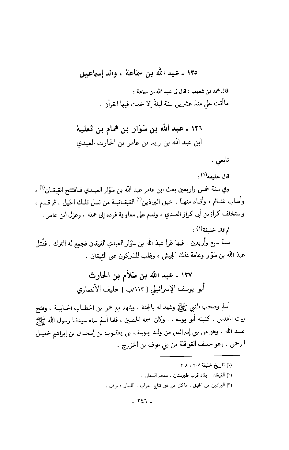 ثم قال خليفة: سنة سبع وأربعين: فيها غزا عبد الله بن سوار العبدي القيقان فجمع له الترك. فقتل عبد الله بن سوار وعامة ذلك الجيش، وغلب المشركون على القيقان.