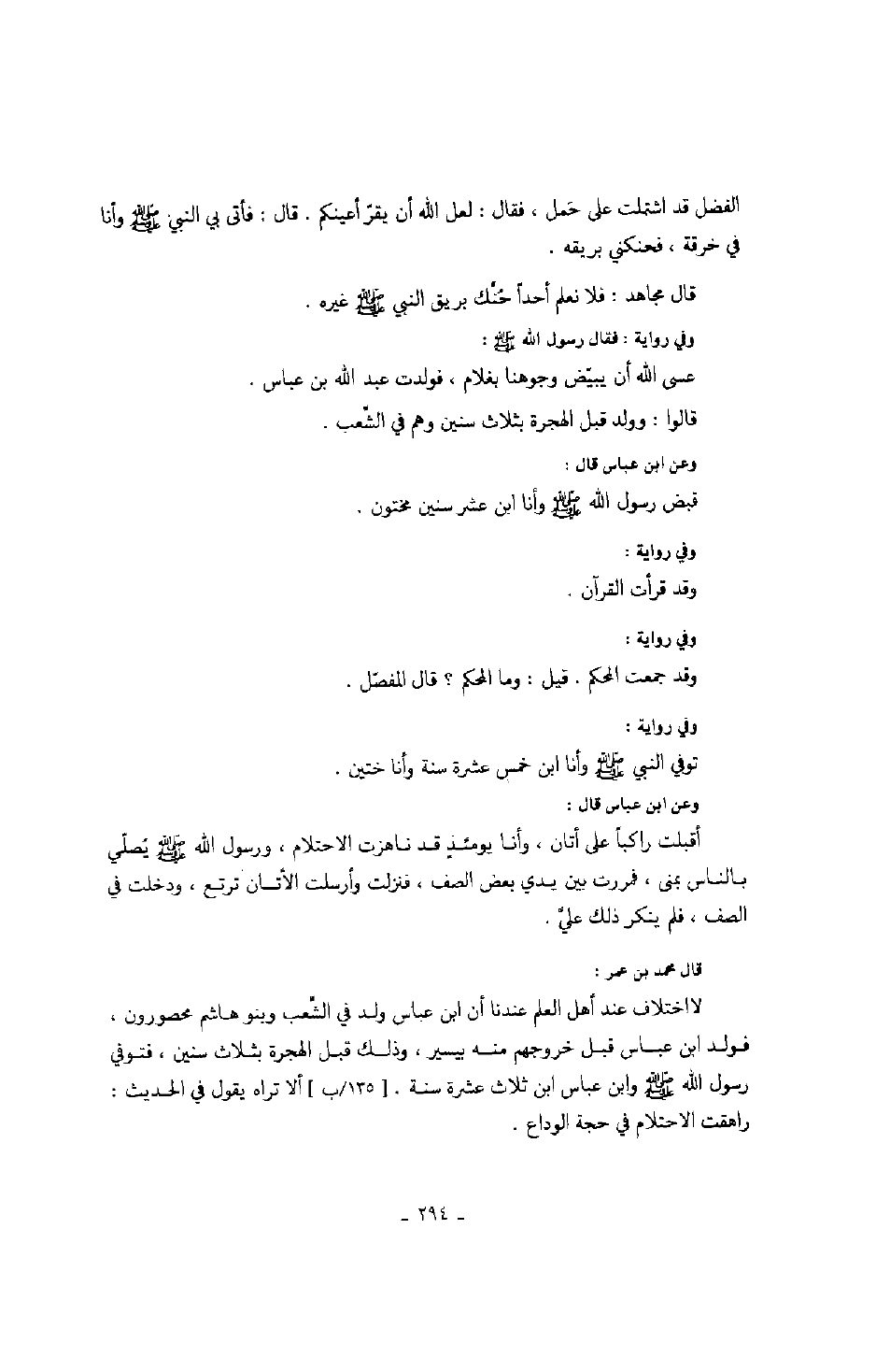 وفي رواية: فقال رسول الله صَلَّى اللهُ عَلَيْهِ وَسَلَّمَ: " عسى الله أن يبيض وجوهنا بغلام، فولدت عبد الله بن عباس.