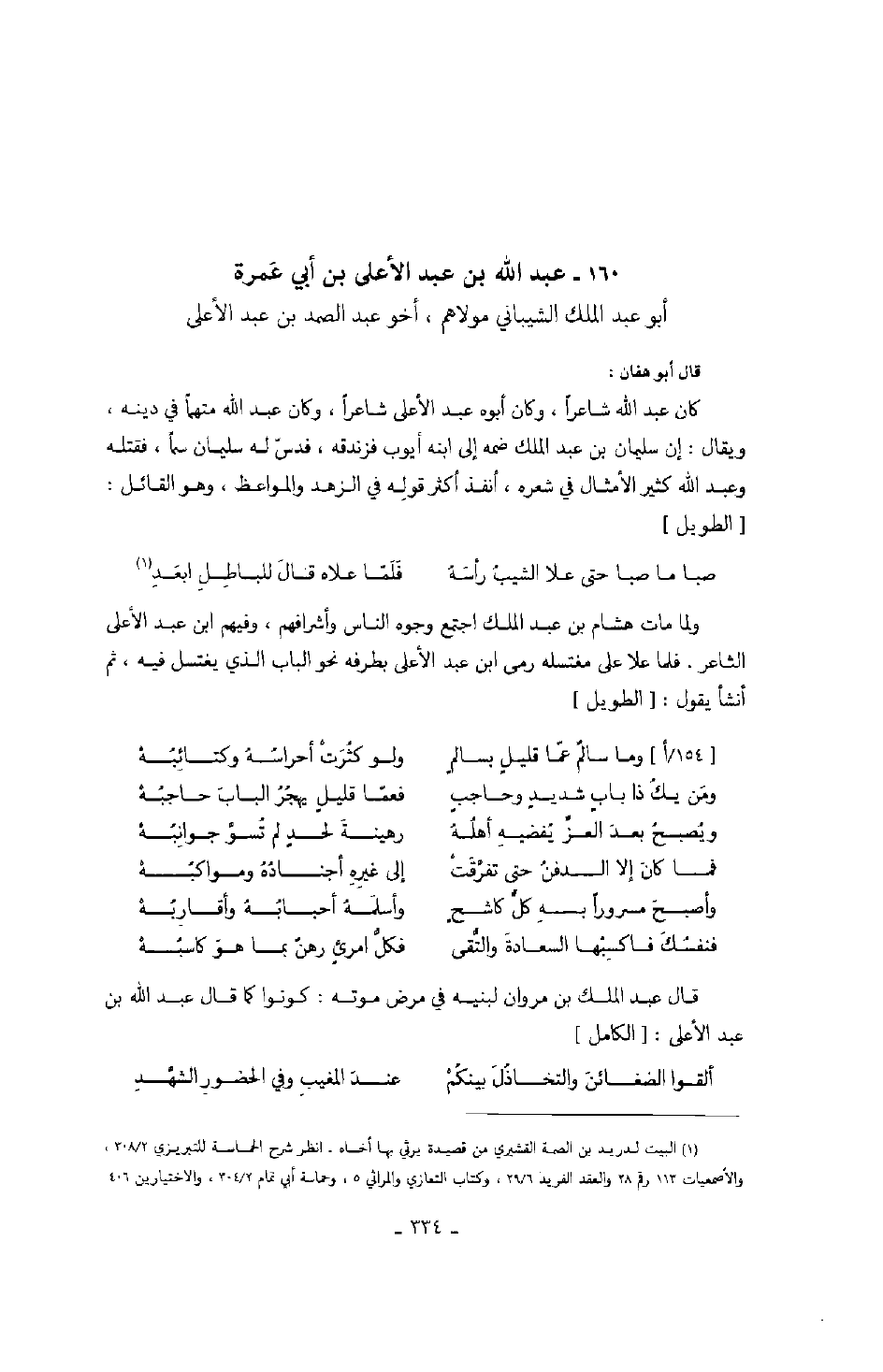 قال عبد الملك بن مروان لبنيه في مرض موته: كونوا كما قال عبد الله بن عبد الأعلى: من الكامل