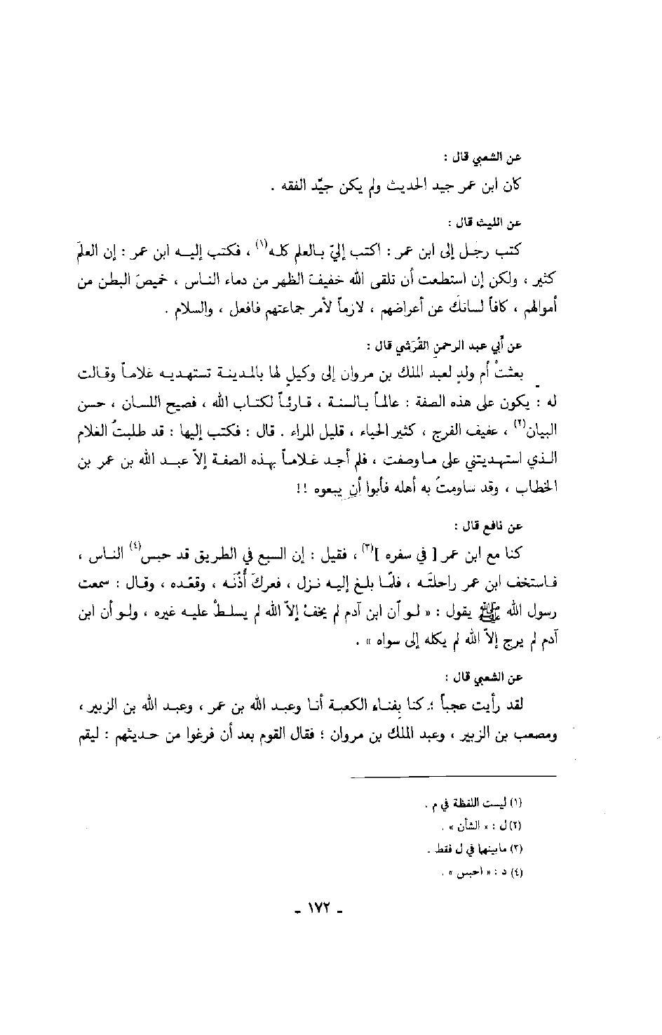 عن الشعبي قال: كان ابن عمر جيد الحديث ولم يكن جيد الفقه.