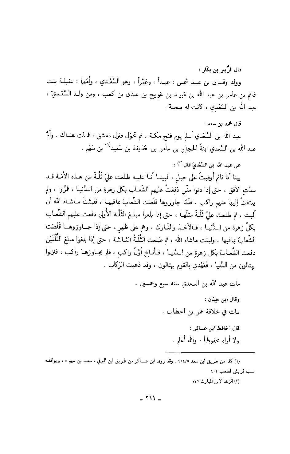 مات عبد الله بن السعدي سنة سبع وخمسين.