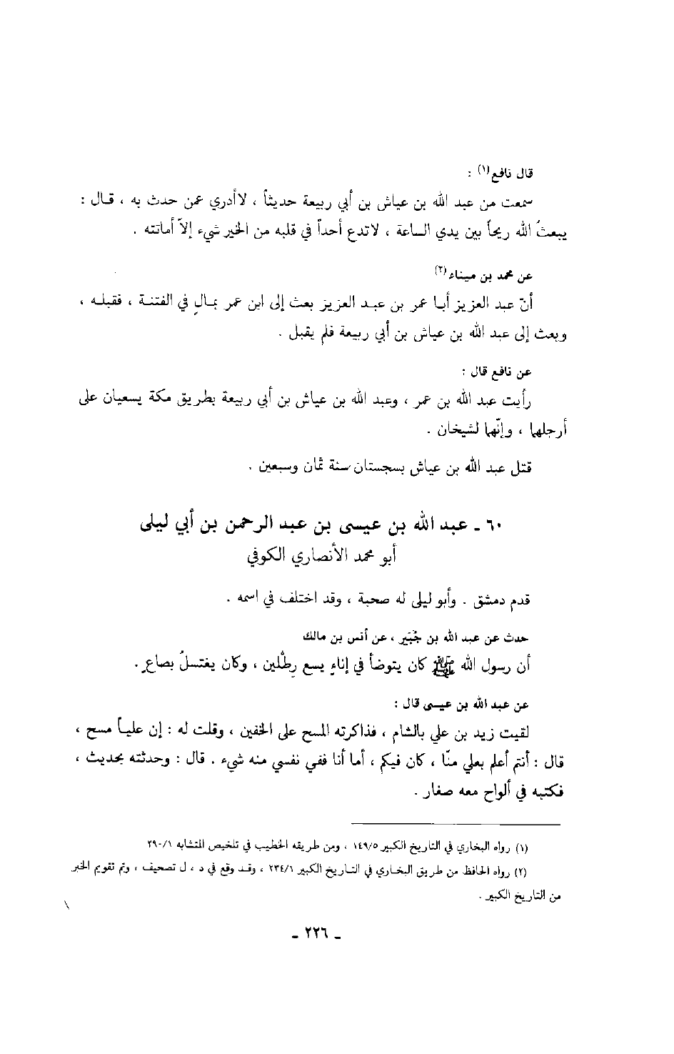 عن نافع قال: رأيت عبد الله بن عمر، وعبد الله بن عياش بن أبي ربيعة بطريق مكة يسعيان على أرجلهما، وإنهما لشيخان.