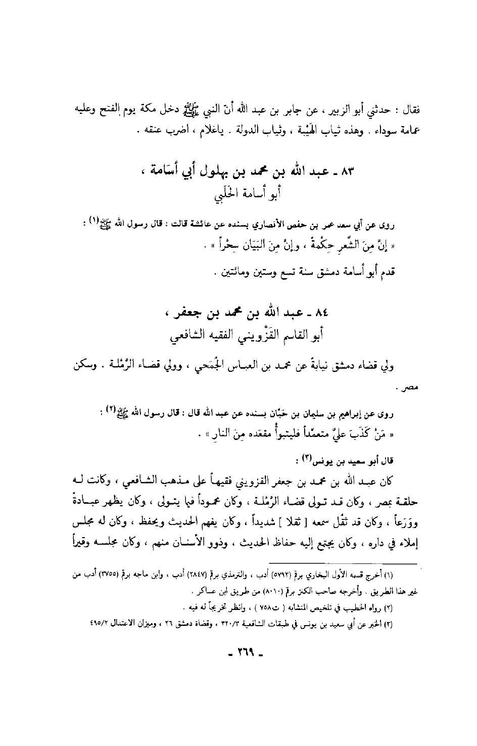 أبو أسامة الحلبي روى عن أبي سعد عمر بن حفص الأنصاري بسنده عن عائشة قالت: قال رسول الله صَلَّى اللهُ عَلَيْهِ وَسَلَّمَ: " إن من الشعر حكمةً، وإن من البيان سحراً ".