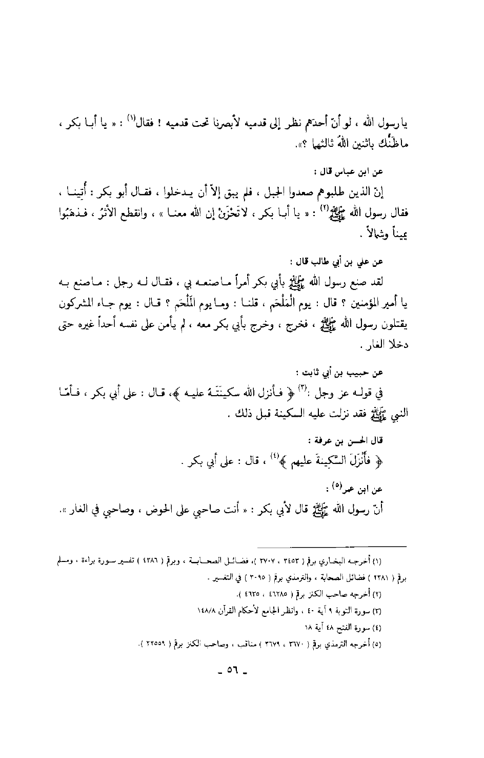 يا رسول الله، لو أن أحدهم نظر إلى قدميه لأبصرنا تحت قدميه! فقال: " يا أبا بكر، ما ظنك باثنين الله ثالثهما؟ ".