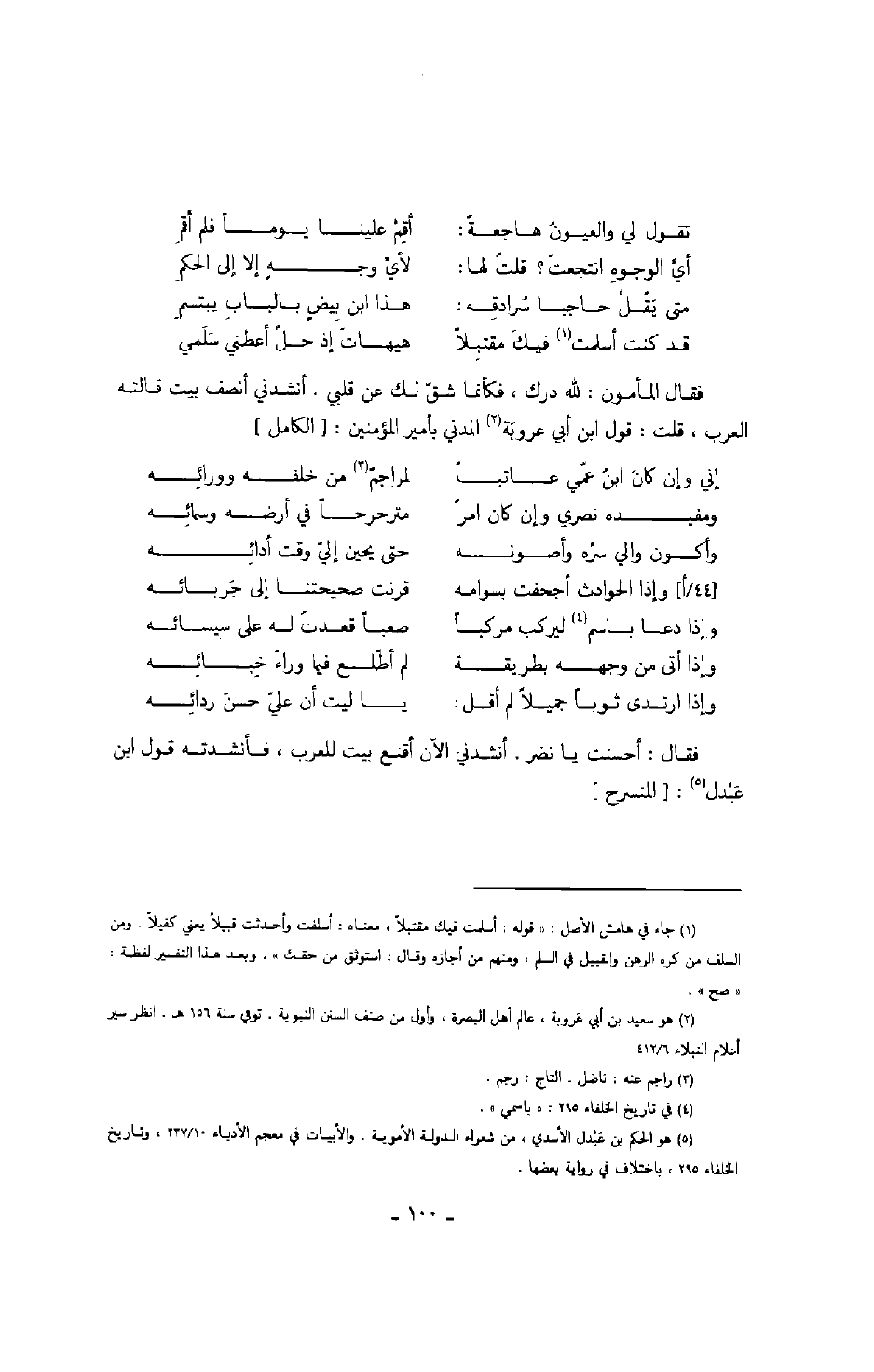 فقال: أحسنت يا نضر. أنشدني الآن أقنع بيت للعرب، فأنشدته قول ابن عبدل: المنسرح