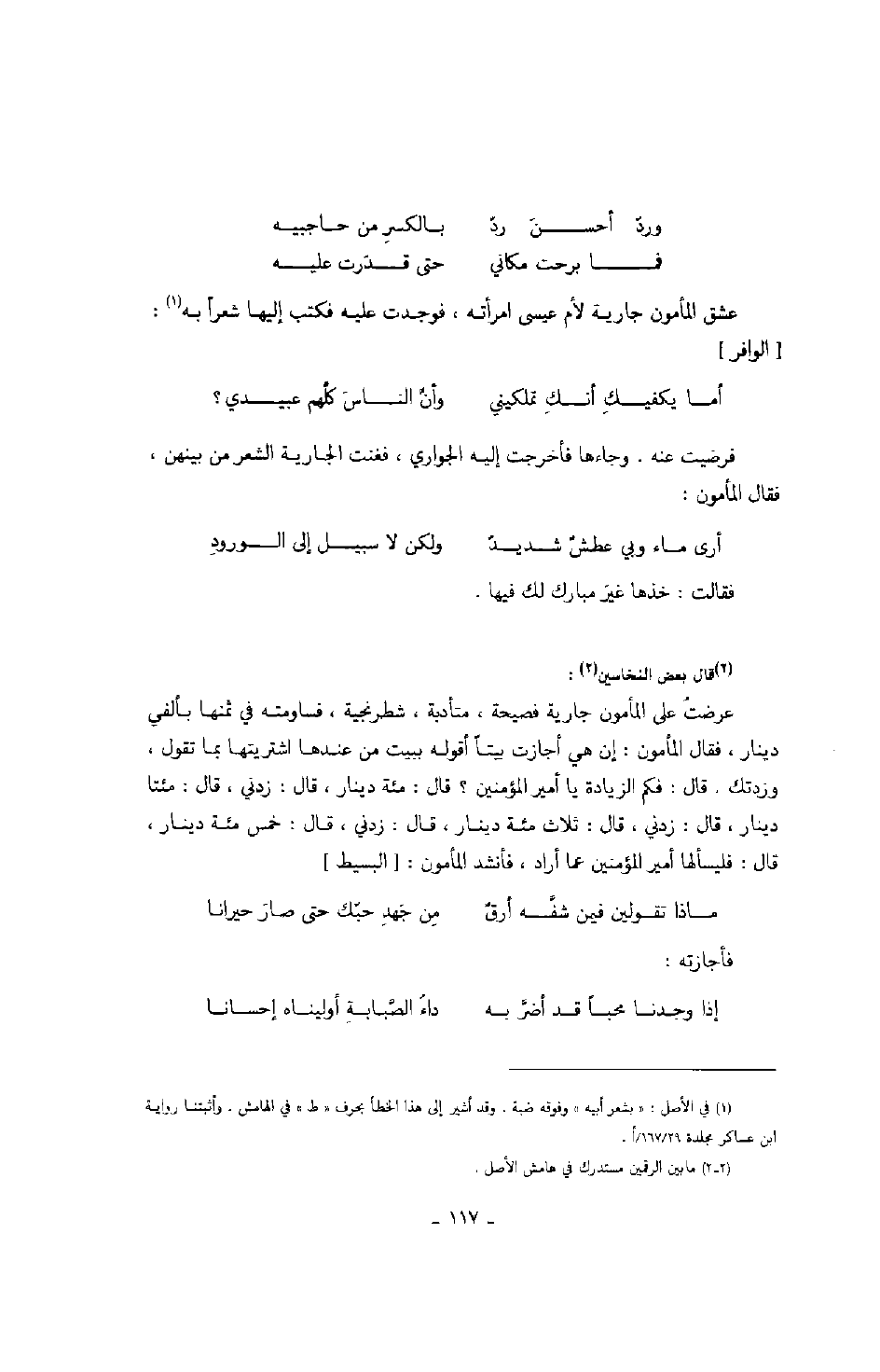 عشق المأمون جارية لأم عيسى امرأته، فوجدت عليه فكتب إليها شعراً به: الوافر