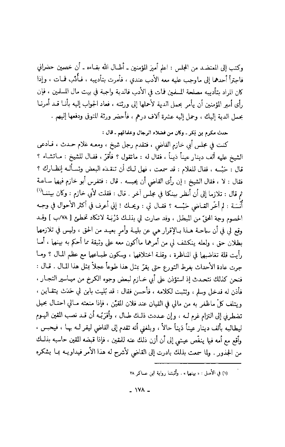 حدث مكرم بن بكر - وكان من فضلاء الرجال وعلمائهم - قال: