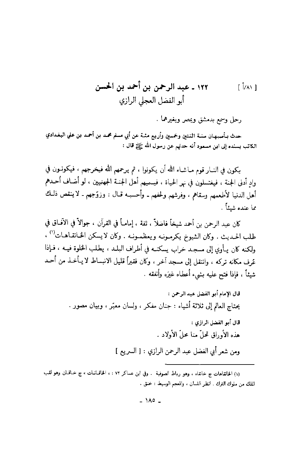 ومن شعر أبي الفضل عبد الرحمن الرازي: السريع