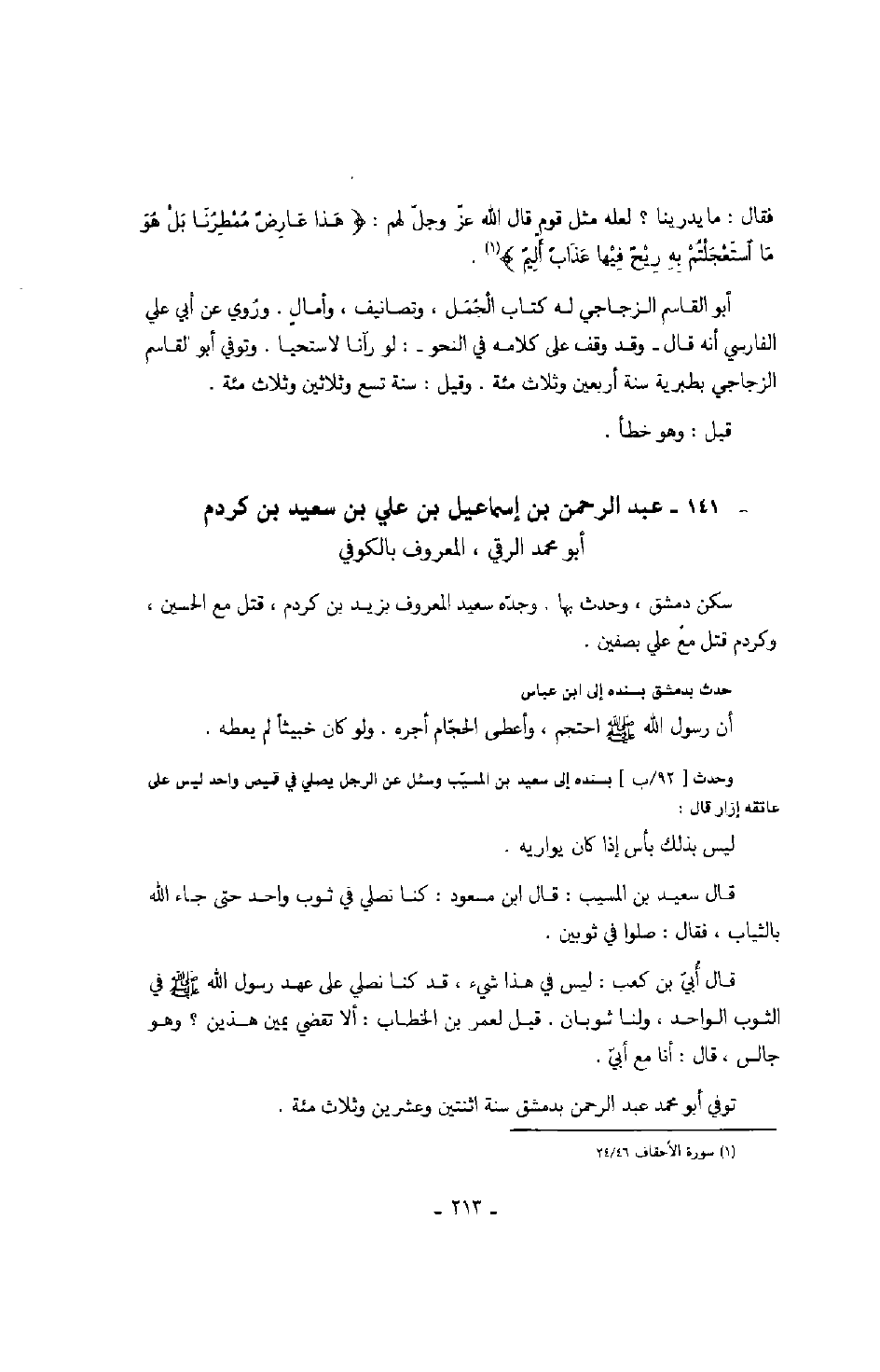 وحدث بسنده إلى سعيد بن المسيب وسئل عن الرجل يصلي في قميص واحد ليس على عاتقة إزار قال: ليس بذلك بأس إذا كان يواريه.