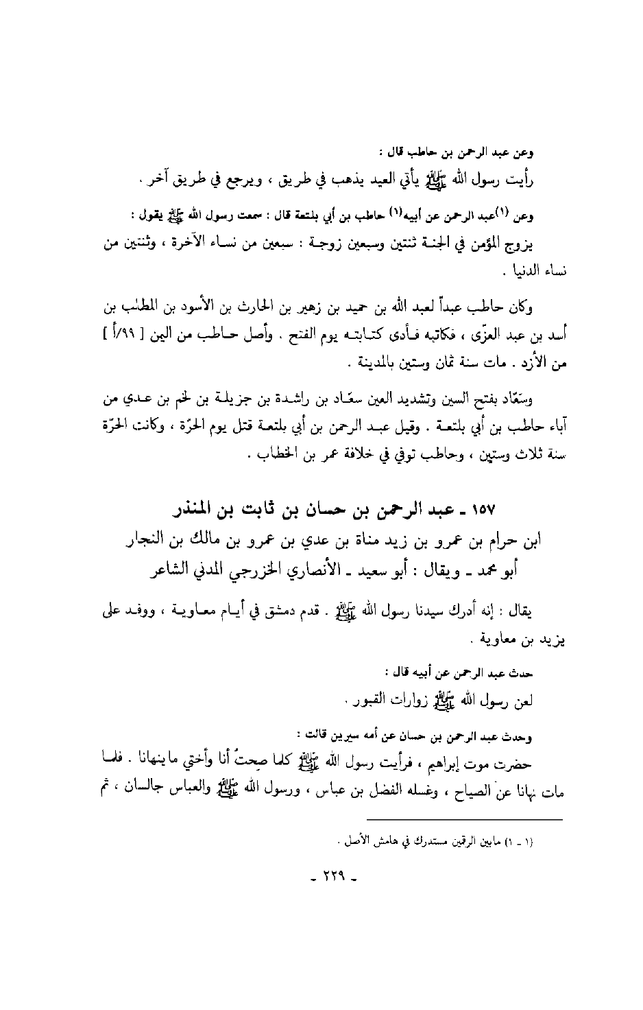 حدث عبد الرحمن عن أبي قال: لعن رسول الله صَلَّى اللهُ عَلَيْهِ وَسَلَّمَ زوارات القبور.