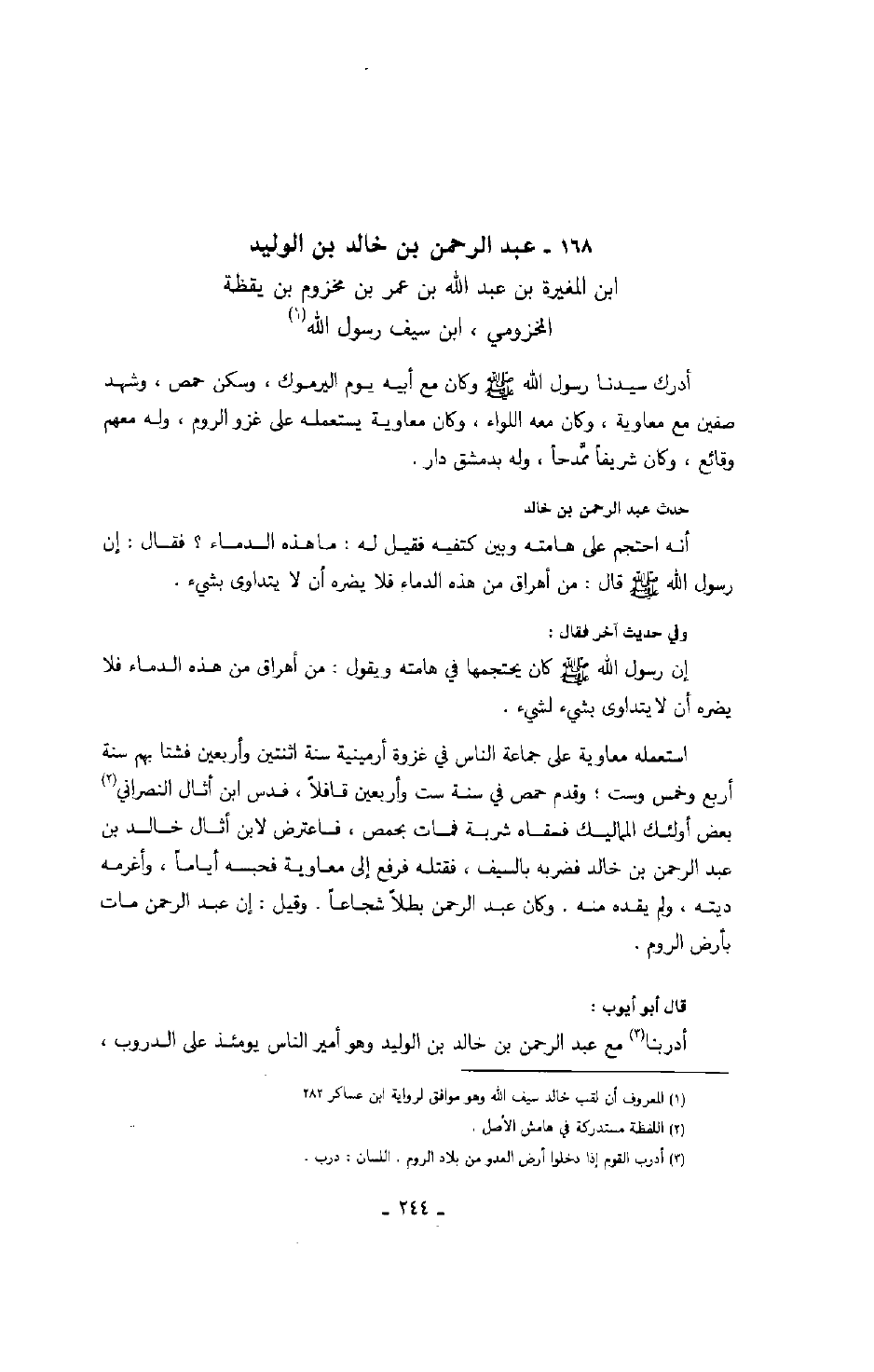 قال أبو أيوب: ادربنا مع عبد الرحمن بن خالد بن الوليد وهو أمير الناس يومئذ على الدروب،