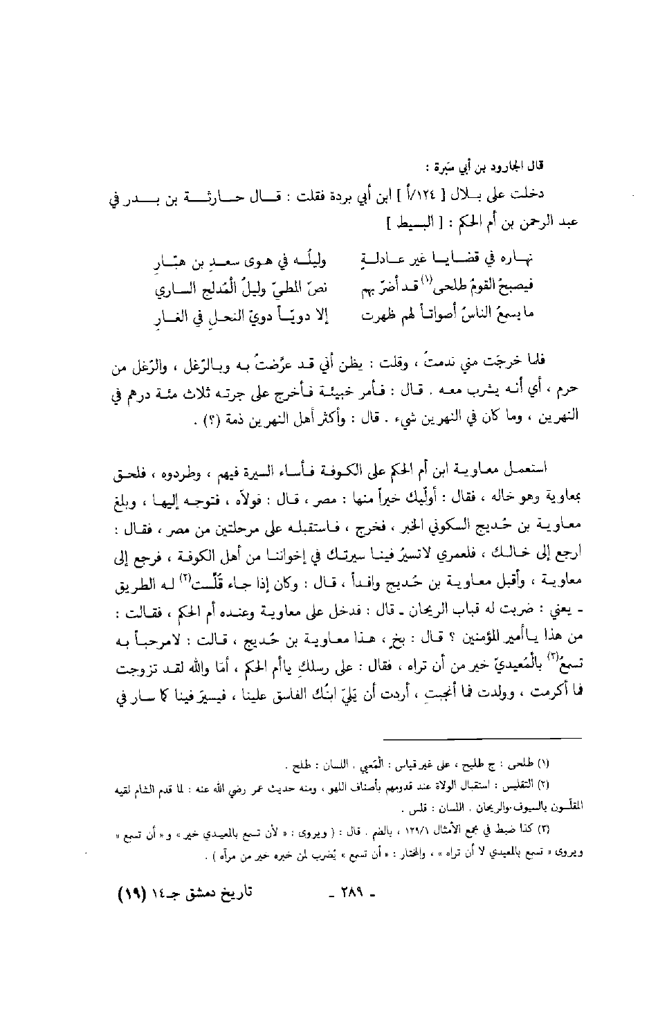 قال الجارود بن أبي سبرة: دخلت على بلال ابن أبي بردة فقلت: قال حارثة بن بدر في عبد الرحمن بن أم الحكم: البسيط