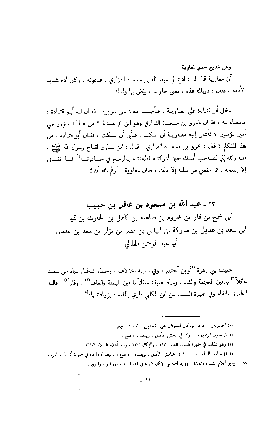 وعن خديج خصي لمعاوية أن معاوية قال له: ادع لي عبد الله بن مسعدة الفزاري، فدعوته، وكان آدم شديد الأدمة، فقال: دونك هذه، يعني جارية، بيض بها ولدك.