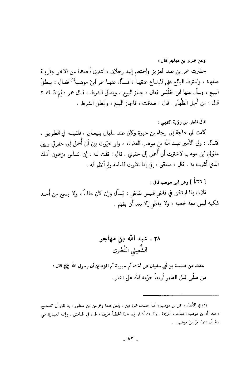 حدث عن عنبسة بن أبي سفيان عن أخته أم حبيبة أم المؤمنين أن رسول الله صَلَّى اللهُ عَلَيْهِ وَسَلَّمَ قال: من صلى قبل الظهر أربعاً حرمه الله على النار.