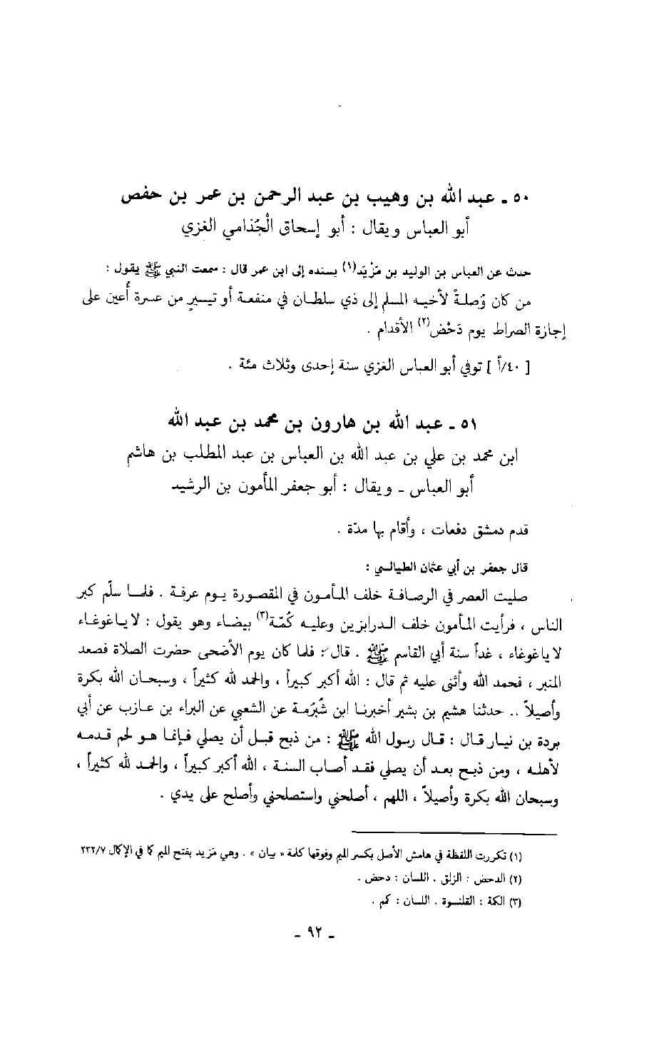 ابن عبد الله بن محمد بن علي بن عبد الله بن العباس بن عبد المطلب بن هاشم أبو العباس - ويقال: أبو جعفر المأمون بن الرشيد قدم دمشق دفعات، وأقام بها مدة.
