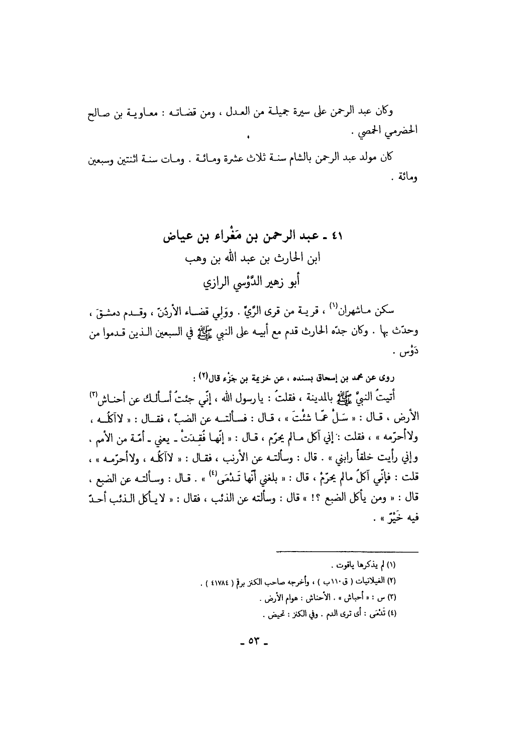 عبد الرحمن بن مغراء بن عياض بن الحارث بن عبد الله بن وهب