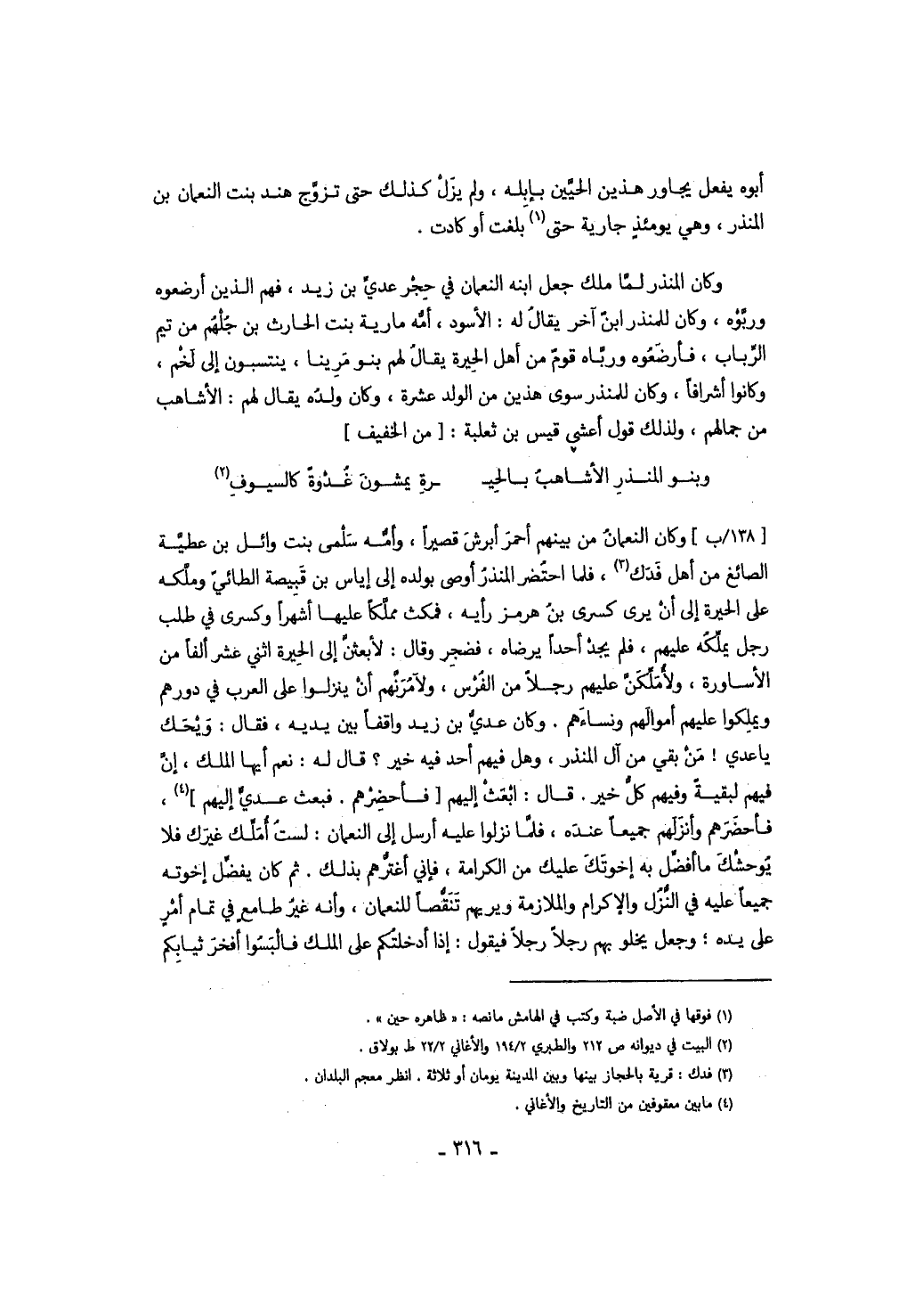 أبوه يفعل يجاور هذين الحيين بإبله، ولم يزل كذلك حتى تزوج هند بنت النعمان بن المنذر، وهي يومئذ جارية حتى بلغت أو كادت.