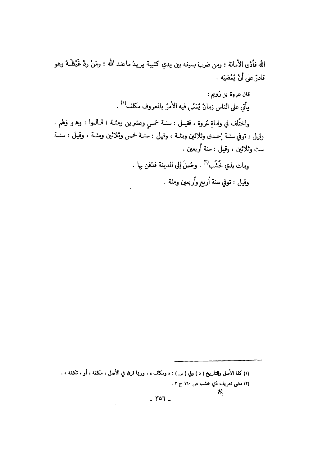 واختلف في وفاة عروة، فقيل: سنة خمس وعشرين ومئة، وقالوا: وهو وهم.