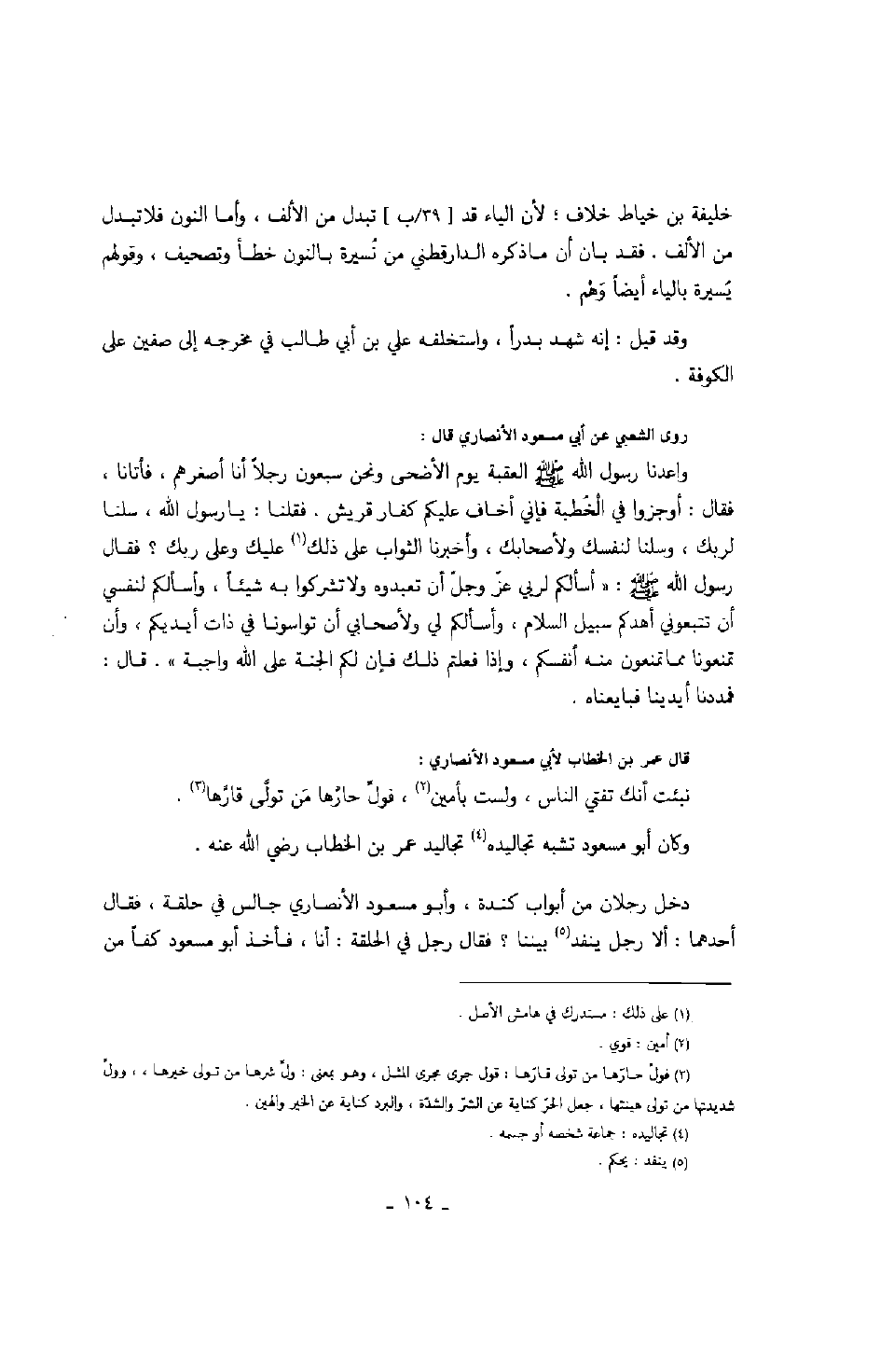 خليفة بن خياط خلاف؛ لأن الياء قد تبدل من الألف، وأما النون فلا تبدل من الألف. فقد بان ان ما ذكره الدارقطني من نسيرة بالنون خطأ وتصحيف، وقولهم يسيرة بالياء أيضاً وهم.