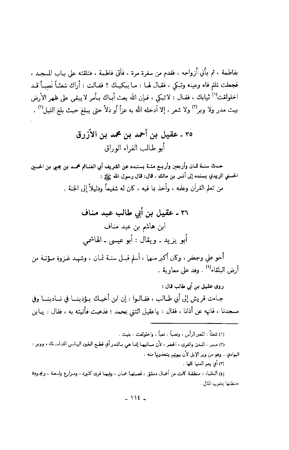 أبو طالب الفراء الوراق حدث سنة ثمان وأربعين وأربع مئة بسنده عن الشريف أبي الغنائم محمد بن يحيى بن الحسين الحسني الزيدي بسنده إلى أنس بن مالك، قال: قال رسول الله صَلَّى اللهُ عَلَيْهِ وَسَلَّمَ: " من تعلم القرآن وعلمه، وأخذ بما فيه، كان له شفيعاً ودليلاً إلى الجنة ".