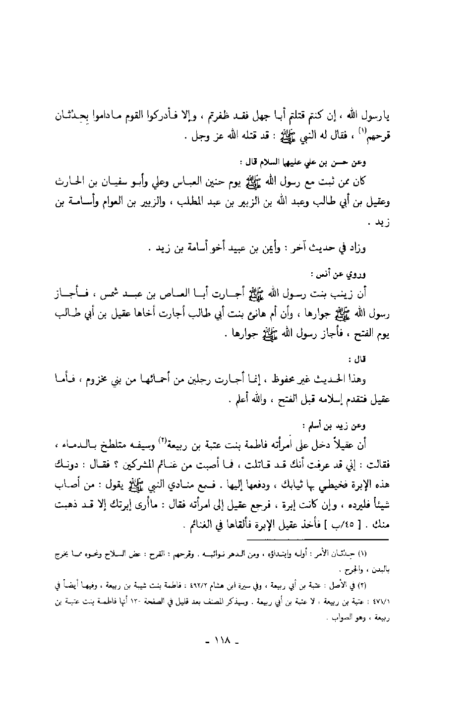 وعن حسن بن علي عليهما السلام قال: كان ممن ثبت مع رسول الله صَلَّى اللهُ عَلَيْهِ وَسَلَّمَ يوم حنين العباس وعلي وأبو سفيان بن الحارث وعقيل بن أبي طالب وعبد الله بن الزبير بن عبد المطلب، والزبير بن العوام وأسامة بن زيد.