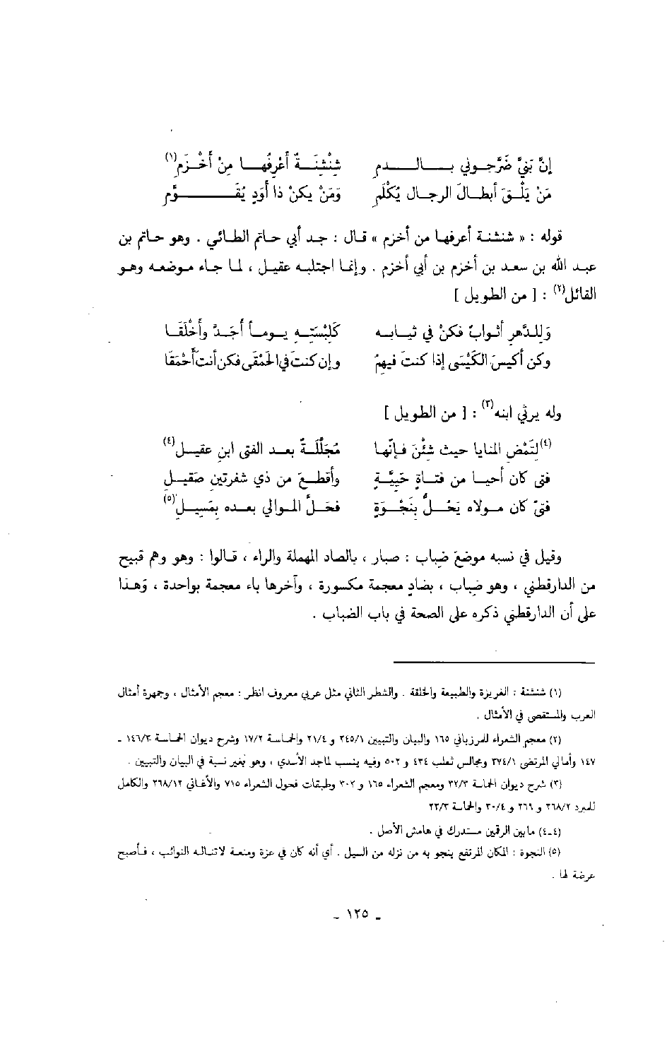 قوله: شنشنة أعرفها من أخزم قال: جد أبي حاتم الطائي. وهو حاتم بن عبد الله بن سعد بن أخزم بن أبي أخزم. وإنما اجتلبه عقيل، لما جاء موضعه وهو القائل: من الطويل