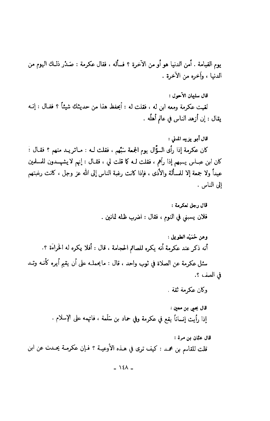 قال يحيى بن معين: إذا رأيت إنساناً يقع في عكرمة وفي حماد بن سلمة، فاتهمه على الإسلام.