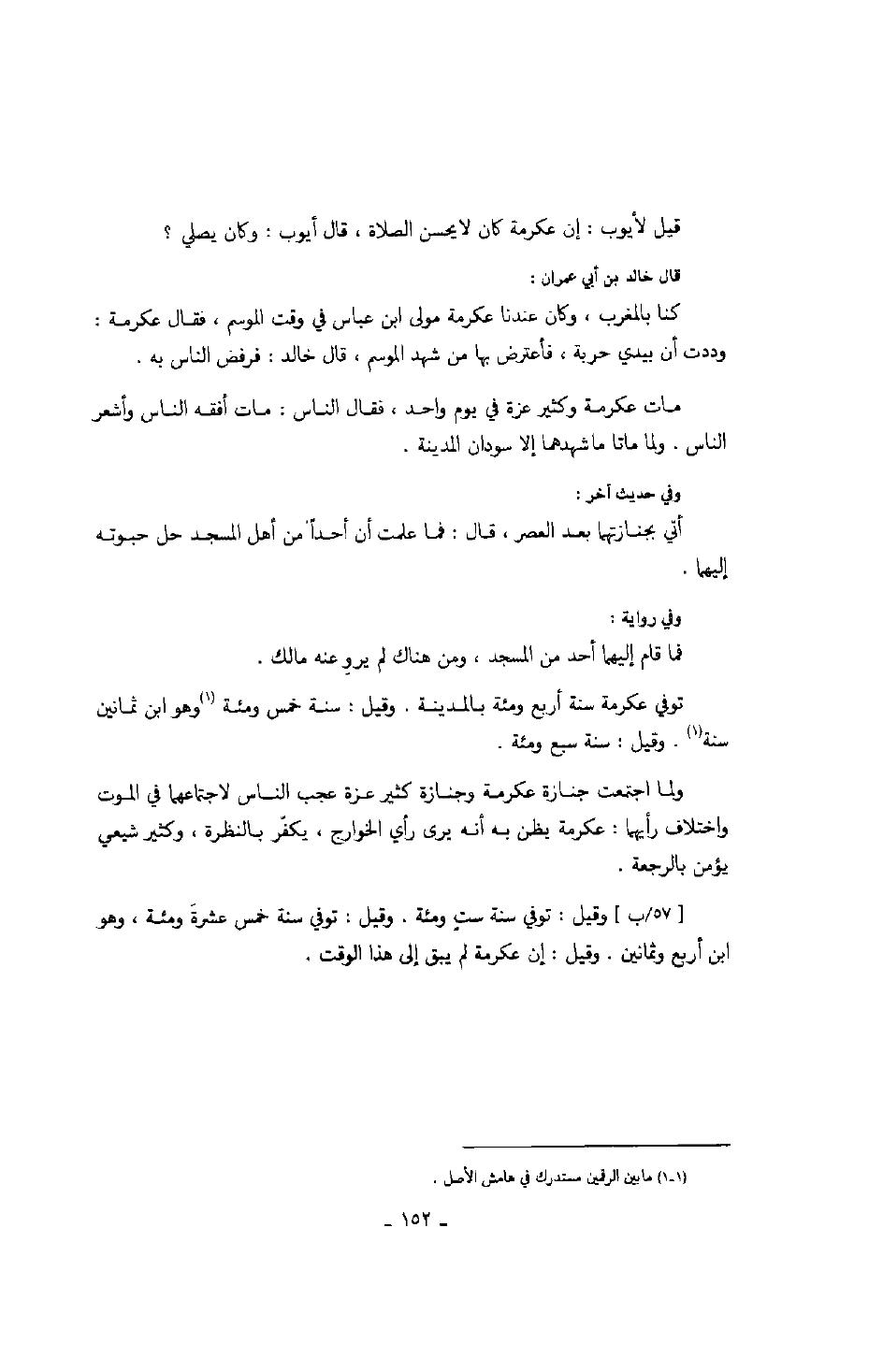 قيل لأيوب: إن عكرمة كان لا يحسن الصلاة، قال أيوب: وكان يصلي؟ قال خالد بن أبي عمران: كنا بالمغرب، وكان عندنا عكرمة مولى ابن عباس في وقت الموسم، فقال عكرمة: وددت أن بيدي حربة، فأعترض بها من شهد الموسم، قال خالد: فرفض الناس به.