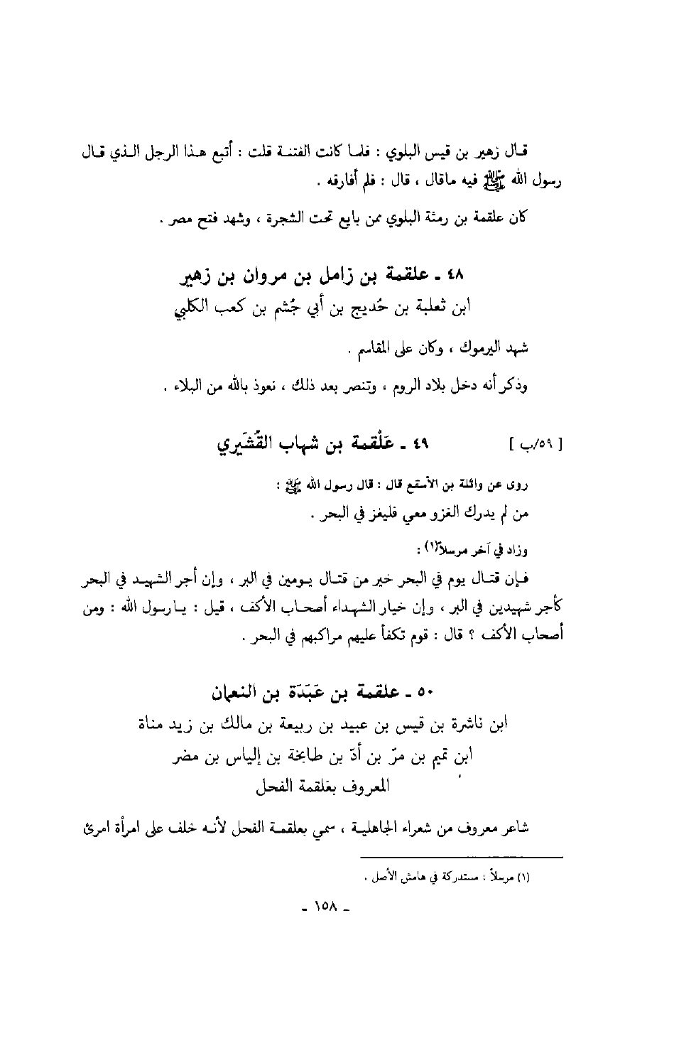 قال زهير بن قيس البلوي: فلما كانت الفتنة قلت: أتبع هذا الرجل الذي قال رسول الله صلّى الله عليه وسلّم فيه ما قال، قال: فلم أفارقه.