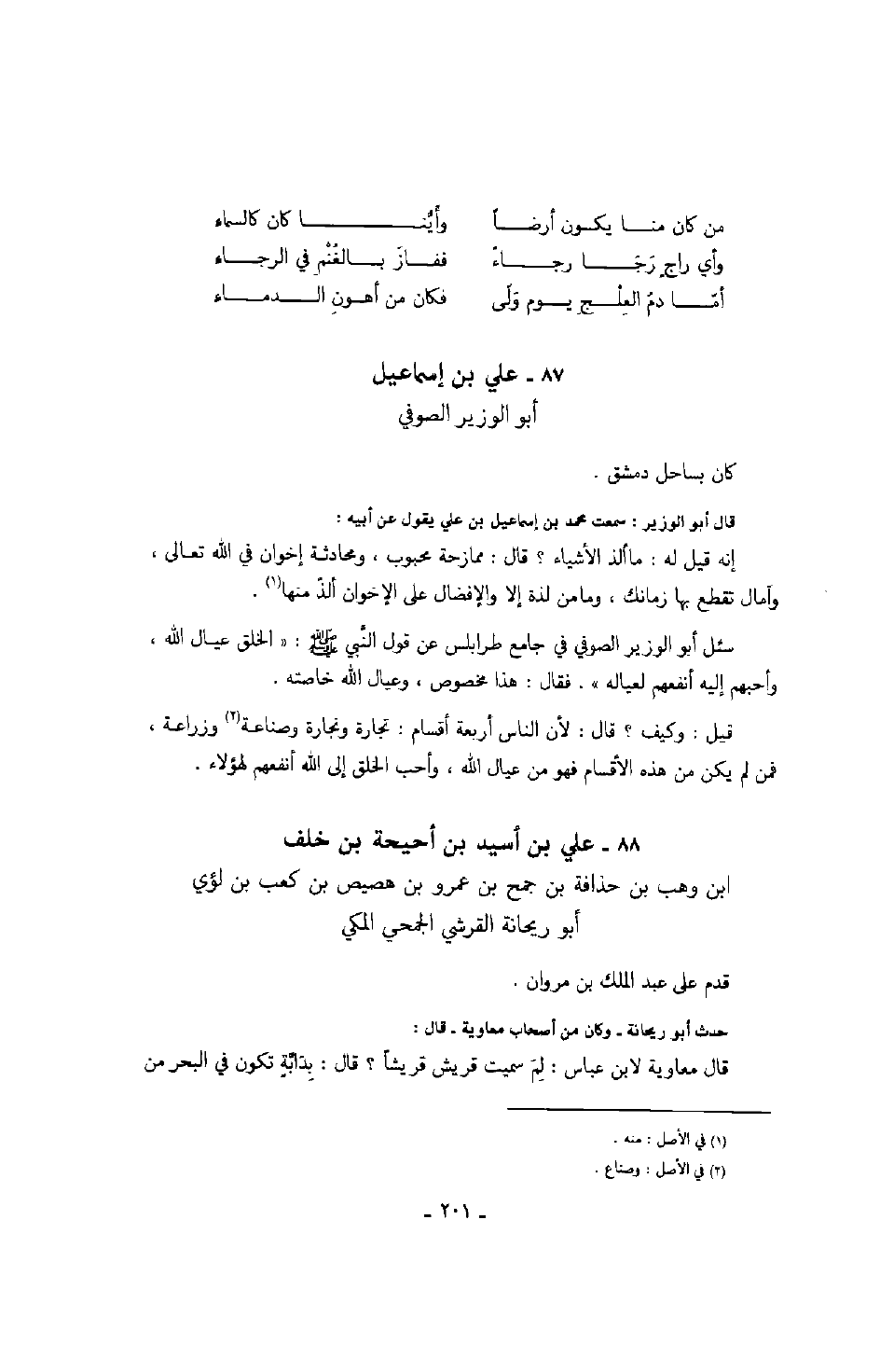 قيل: وكيف؟ قال: لأن الناس أربعة أقسام: تجارة ونجارة وصناعة وزراعة، فمن لم يكن من هذه الأقسام فهو من عيال الله، وأحب الخلق إلى الله أنفعهم لهؤلاء.