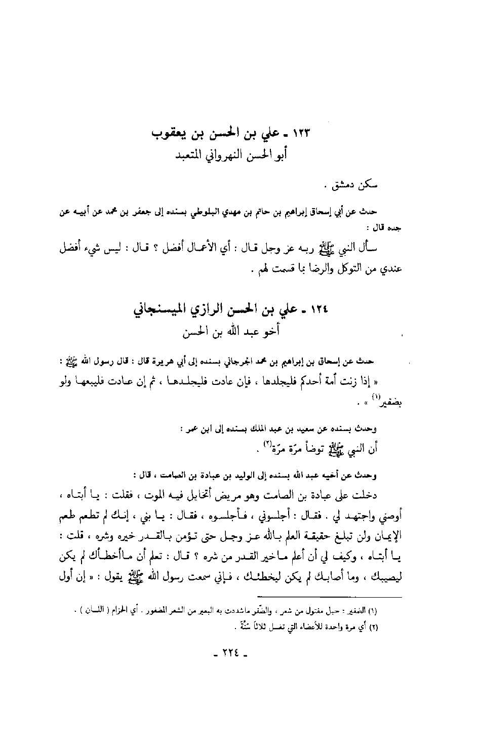 أخو عبد الله بن الحسن حدث عن إسحاق بن إبراهيم بن محمد الجرجاني بسنده إلى أبي هريرة قال: قال رسول الله صلّى الله عليه وسلّم: " إذا زنت أمة أحدكم فليجلدها، فإن عادت فليجلدها، ثم إن عادت فليبعها ولو بضقير ".