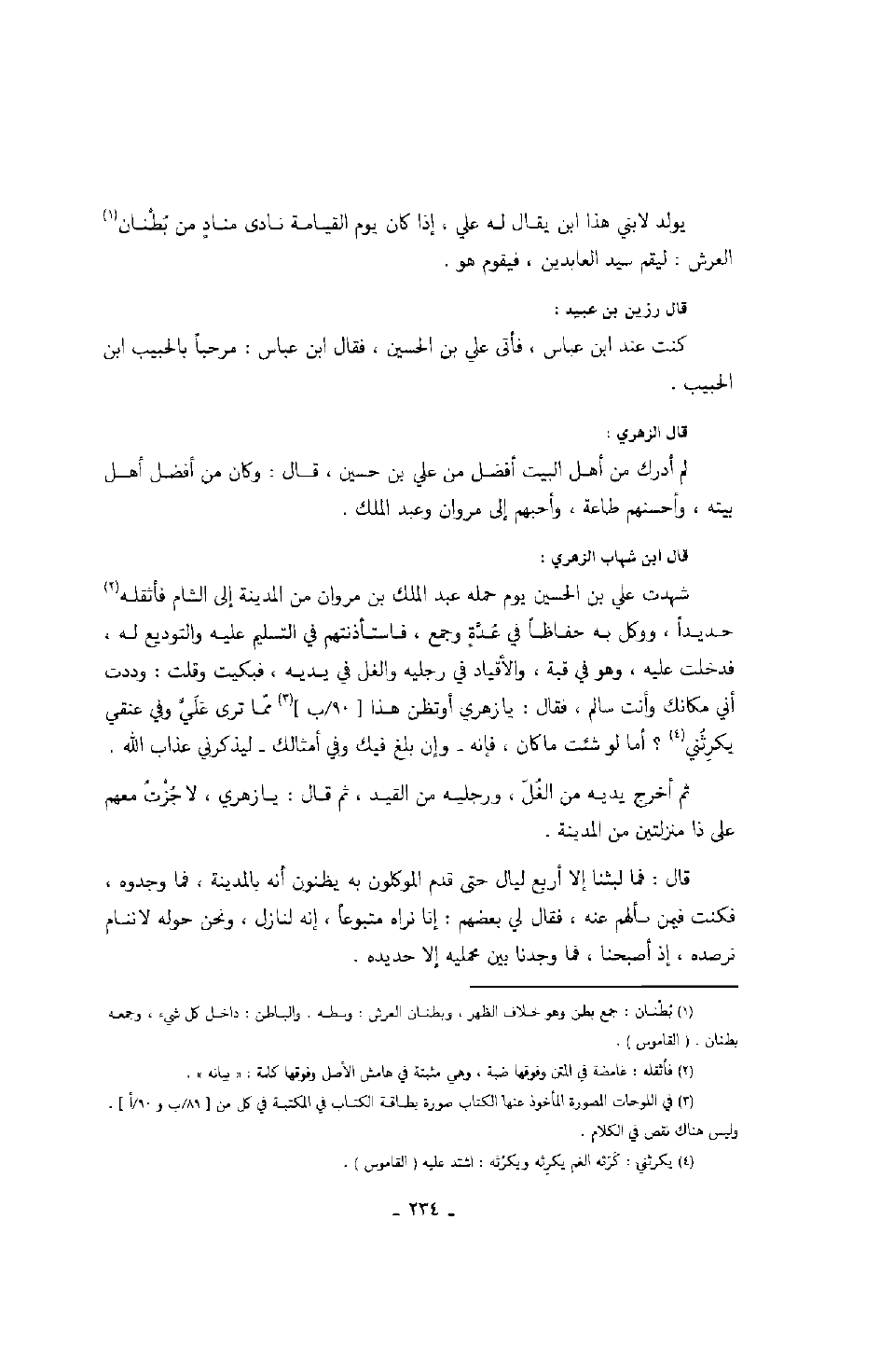 قال الزهري: لم أدرك من أهل البيت أفضل من علي بن حسين، قال: وكان من أفضل أهل بيته، وأحسنهم طاعة، وأحبهم إلى مروان بن عبد الملك.