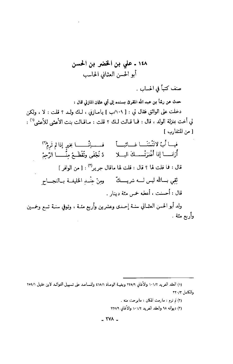 أبو الحسن العثماني الحاسب صنف كتباً في الحساب.