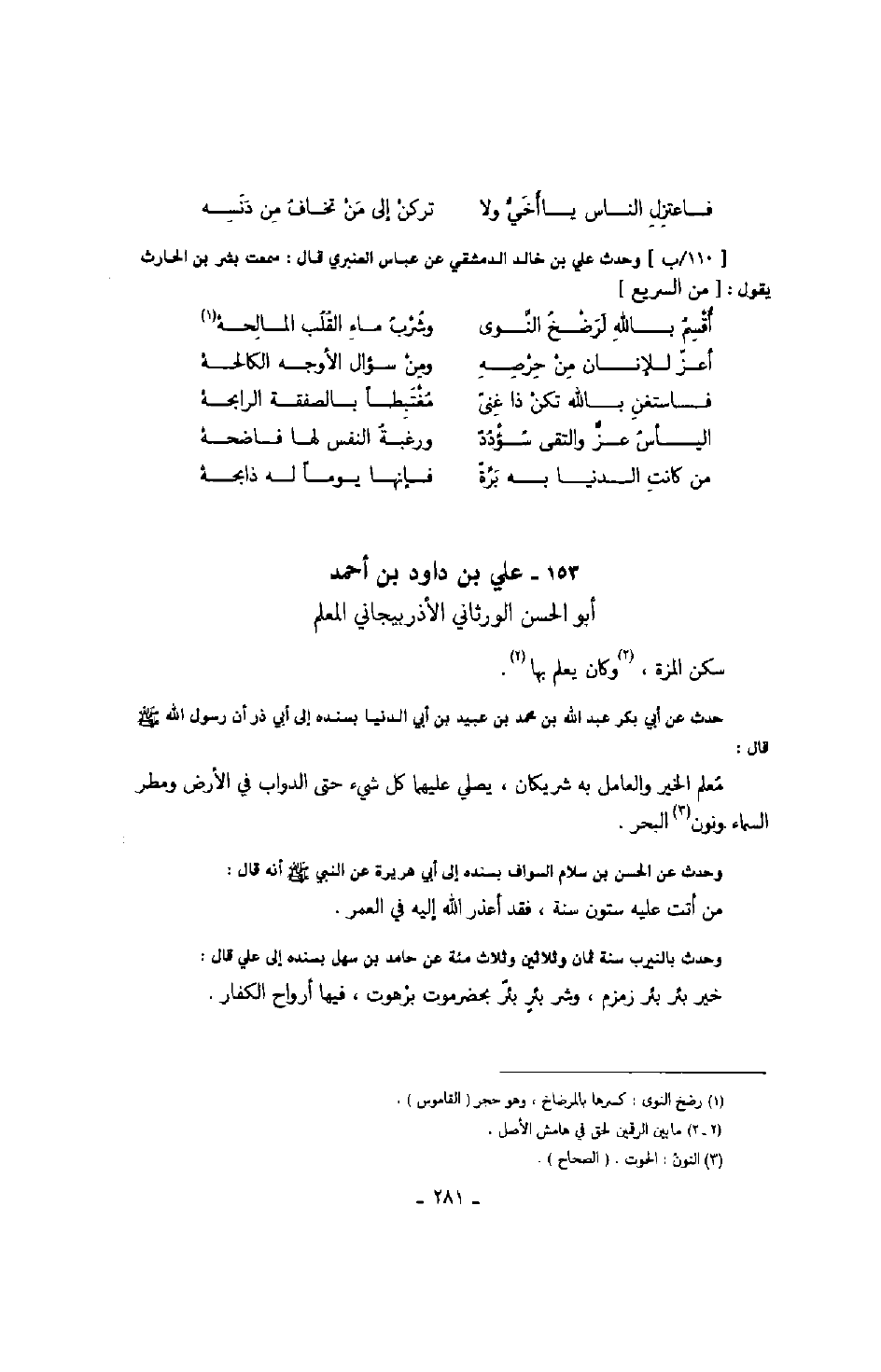 وحدث علي ين خالد الدمشقي عن عباس العنبري قال: سمعت بشر بن الحارث يقول: من السريع