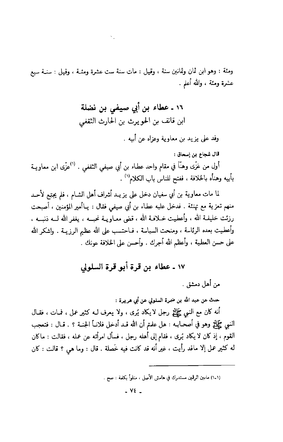 ومئة: وهو ابن ثمان وثمانين سنة، وقيل: مات سنة ست عشرة ومئة، وقيل: سنة سبع عشرة ومئة، والله أعلم.