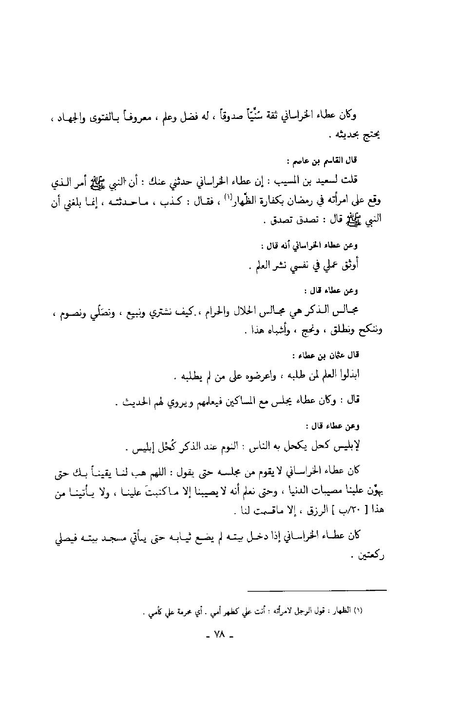 وعن عطاء قال: مجالس الذكر هي مجالس الحلال والحرام، كيف نشتري ونبيع، ونصلّي ونصوم وننكح ونطلق، ونحج، وأشباه هذا.